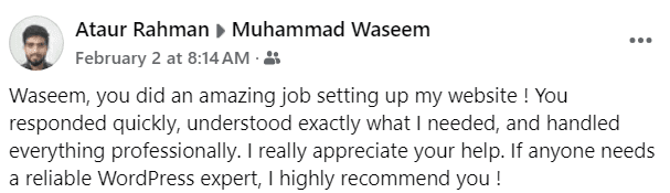 Posted on LHOUSSAIN OUBIHI I had a great experience working with Webs Pulse ! Muhammad Waseem quickly understood my requirements and set up my website exactly as I wanted. His response time was fast, and he handled everything professionally. If you're looking for a reliable WordPress expert, I highly recommend Webs Pulse !Posted on Abdul Rehman Such a great developer if you are looking for someone reliable and highly skilled,he's definitely the go-tu guy!Posted on Muhammad Shahroz Khagga WebsPulse helped me to launch my LMS website. Their support was invaluable in boosting my digital presence and attracting new clients. I highly recommend them for their expertise and exceptional service!Posted on Shahzad Aslam Webs Pulse Designed my Dynamic Website Stunning. Website loads Very Fast. I think Webs Pulse Agency is Best Service Provider that Solve Your Issues in couple of minutes So that I'll prefer to get their services.Posted on Pak Trolley I have used their services and found their team to be professional, trustworthy, and very supportive.Posted on Sharjeel Tariq I’m thrilled with the website Webs Pulse designed and developed for me. Their service was excellent, the quality of work was amazing, and communication was top-notch. Highly recommended!Posted on Shakeel Ahmad Great service and dealing with clients are the most important thing you have show great and excellent work for my bloging website. Thanks ❤️Posted on Uk furniture Sale Great service I am very happy for this