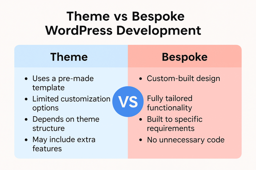 A bespoke WordPress site is an investment in your long term digital presence. While it requires more time and budget upfront, the return is a site that runs faster, looks unique, scales with growth, and builds stronger trust with customers.